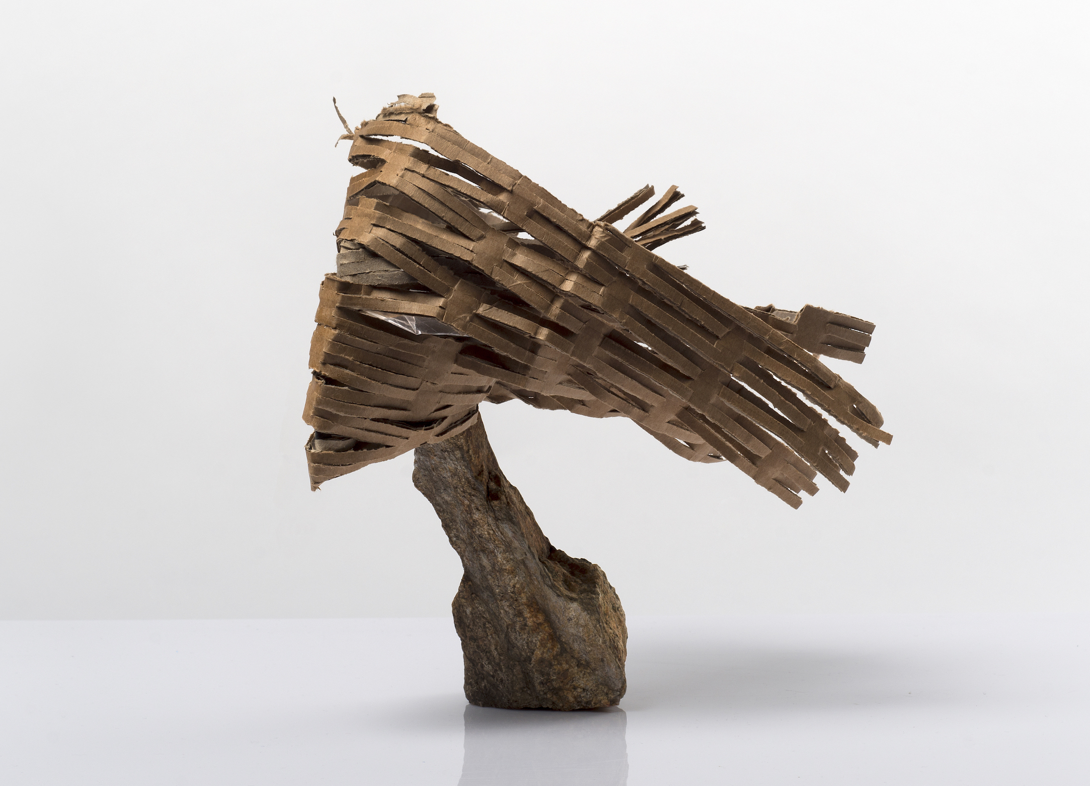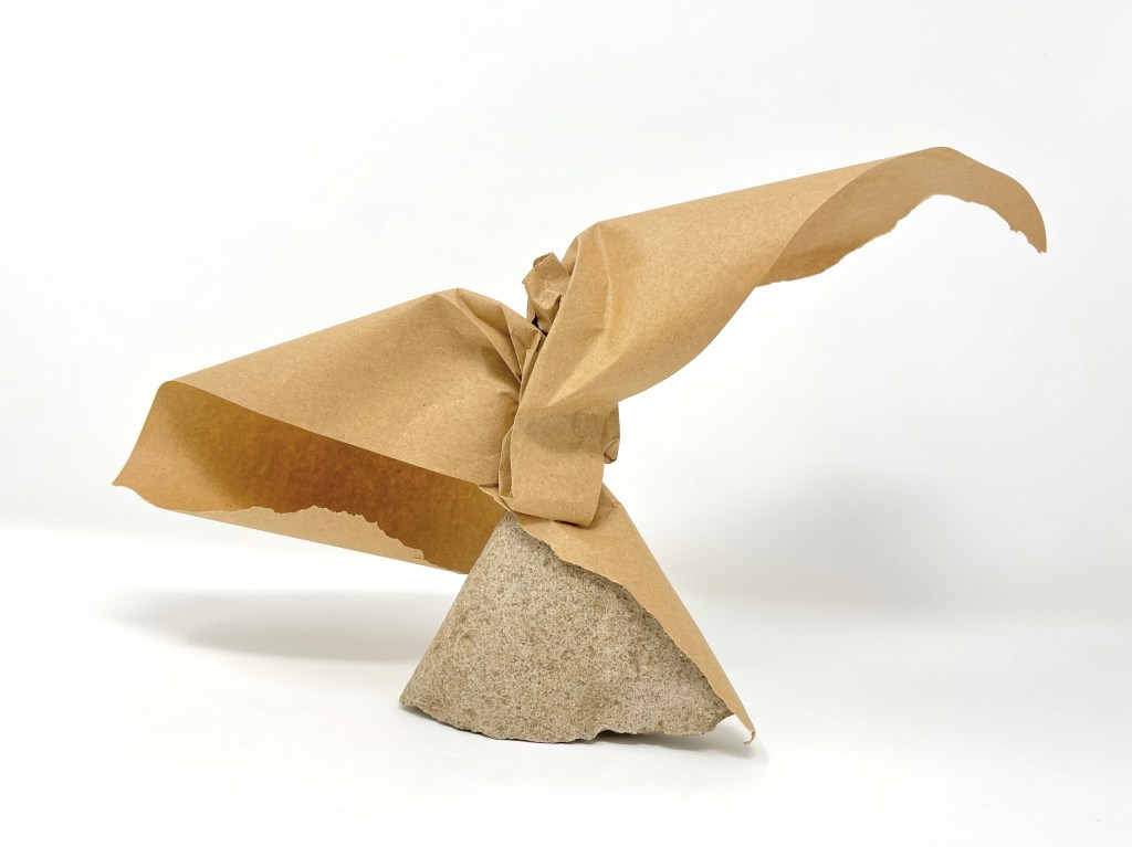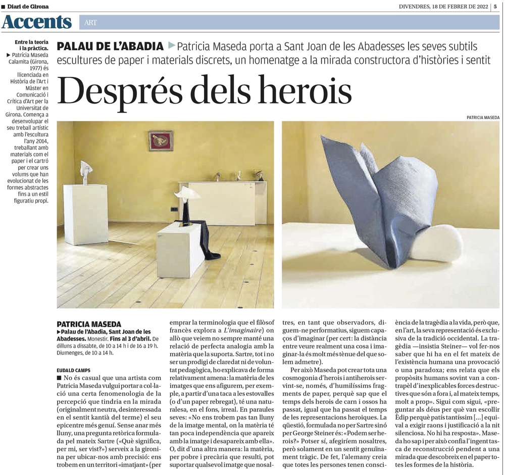 «Mirades» proposa reflexionar sobre les diferents formes de veure a través de la mirada. Una invitació a obrir els ulls i a mirar. A mirar i a ser mirats per uns rostres que trobem entre els plecs que el paper fa visibles en cadascuna de les escultures, que ens interpel·len sobre com ens relacionem amb el món a partir de conceptes com la por, el desig, el pas del temps o la nostra identitat.