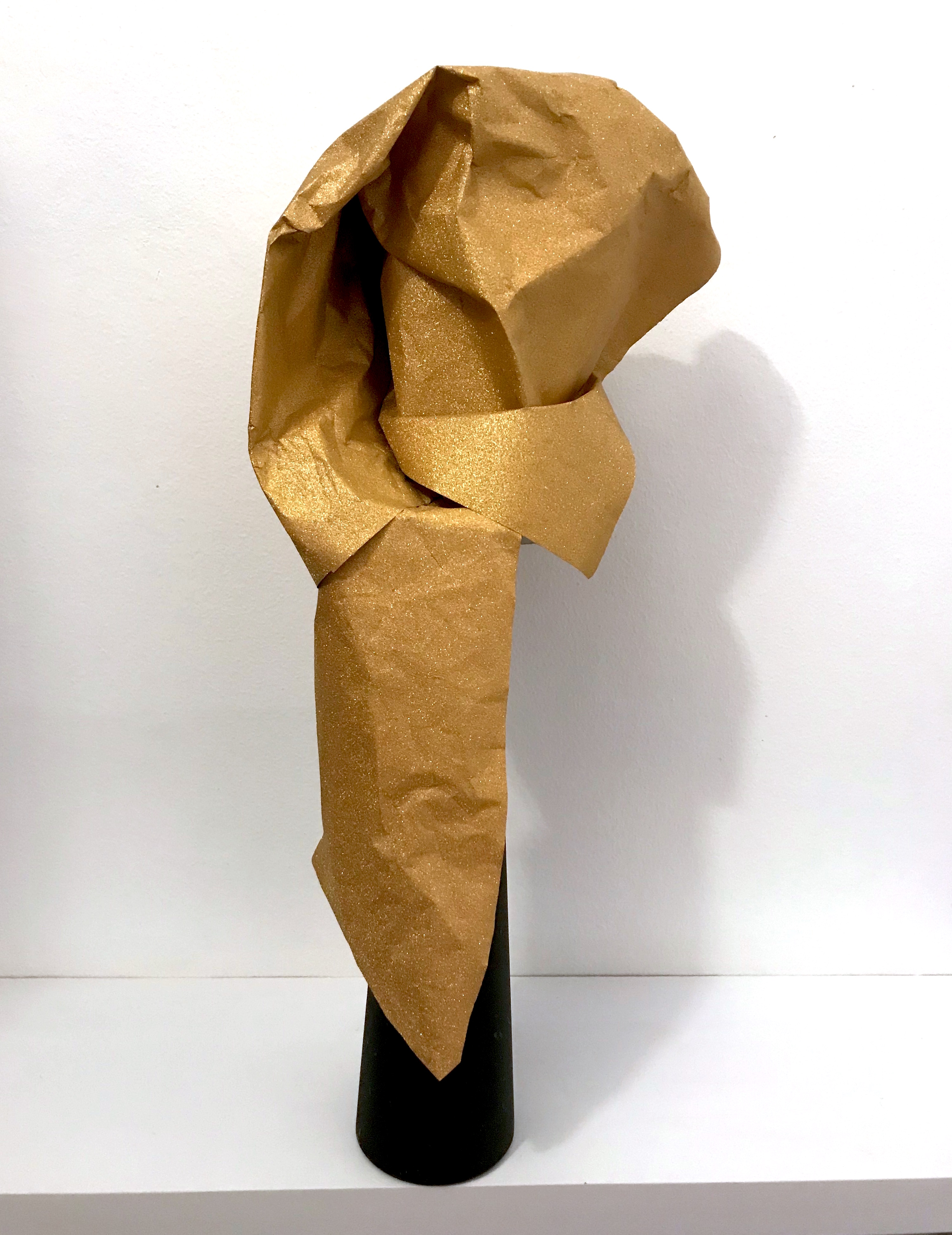 L’escultura, titulada Puer Aeternus, encarna la figura idolàtrica, la reminiscència arcaica de l’ídol primigeni, aquella imatge de culte i de protecció feta de pedra, de fang o de fusta, però també d’or -material noble associat a la lluminositat solar i a la divinitat-, adorada pels clans i per les cultures primitives que contenia i representava una deïtat o esperit.