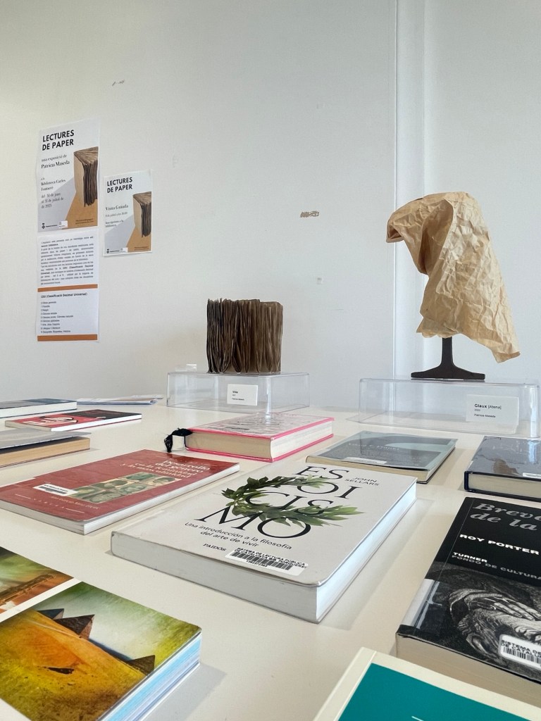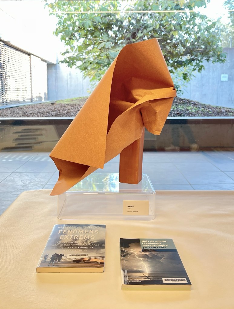 A l’exposició Lectures de paper, aquesta obra (Neféli, 2019) correspon al número 5 de la classificació CDU, que inclou la matèria de meteorologia.